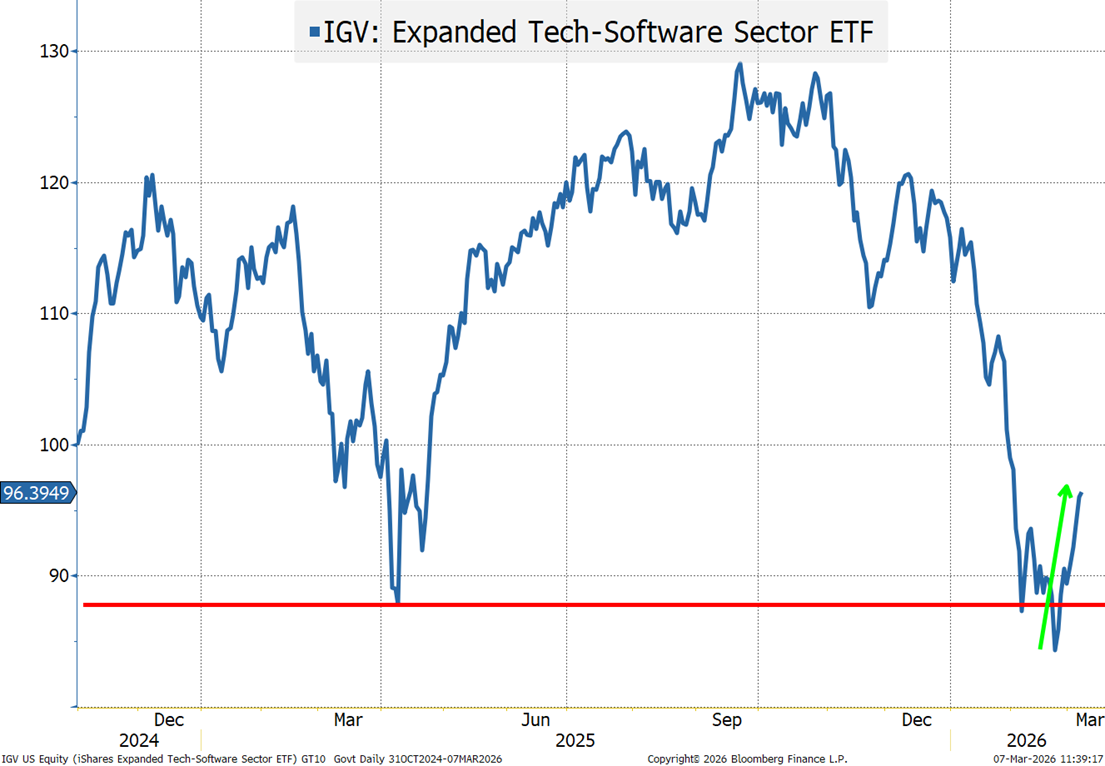 On equities, conflict resolution would set up for a nice rally. Will continue to watch IGV closely as a “tell” that the market is done with the “AI is killing software” narrative.