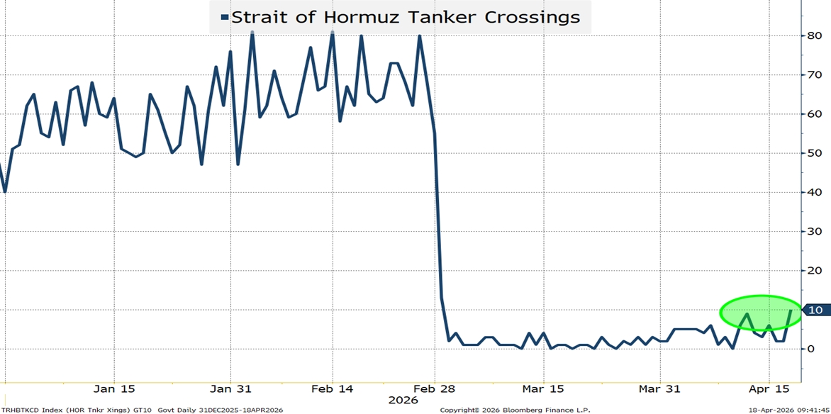 At the time we were all trying to understand what “Blockade” meant. How and what was the U.S. going to do in terms of a blockade? Markets were jittery, but somehow, from almost the get go, markets seemed to take the combination of U.S. and Iranian snippets to mean the Strait was Open.
