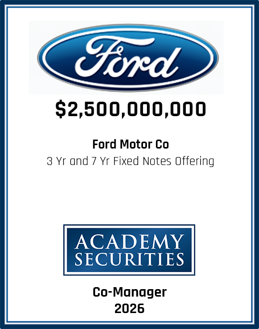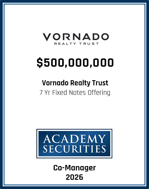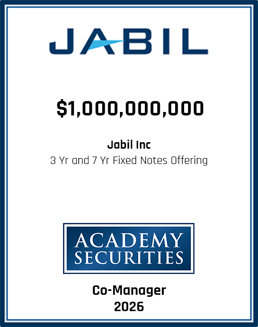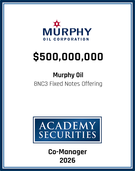 Please browse our recent and historical transactions to learn more about some of the capital markets transactions we participated in, leading to outstanding results for our clients. We would welcome the opportunity to learn more about your requirements and see if our team may be of service to you. Please contact us to see how we can help you and your company