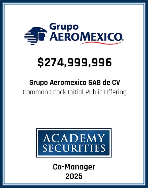 Please browse our recent and historical transactions to learn more about some of the capital markets transactions we participated in, leading to outstanding results for our clients. We would welcome the opportunity to learn more about your requirements and see if our team may be of service to you. Please contact us to see how we can help you and your company